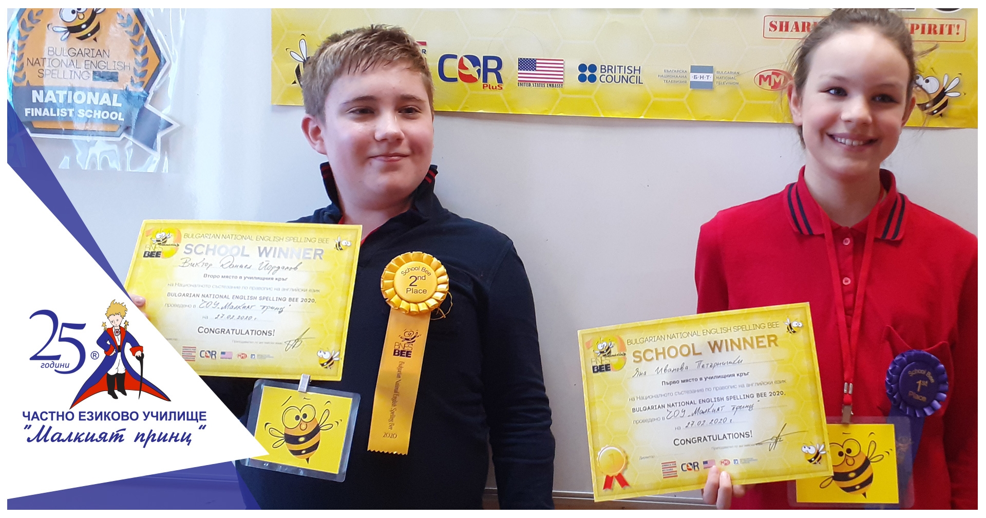 Яна Петърнишки от 5. клас се класира на първо място в училищния кръг, който се проведе на 27.02.2020 г. След оспорвана надпревара в 10 кръга от четиринадесетте състезатели останаха двама. В третия кръг на шампионите Яна спелува правилно думата drizzle и победи Виктор Йорданов от 6. клас, който остана втори. И двамата ученици имат право да участват на регионалното състезание, което ще се проведе на 28.03.2020 г. в гр. Варна. Националният кръг на състезанието ще се проведе на 25 април 2020 г. в София.